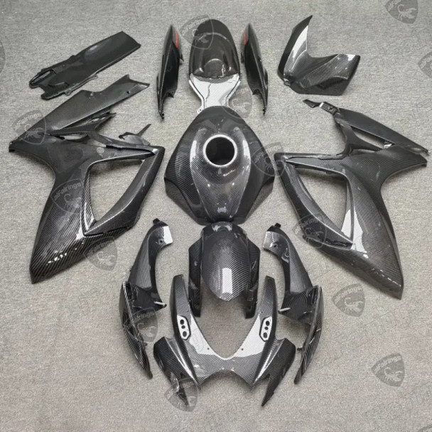 Revitalize your 2006-2007 GSX-R600, GSX-R750 with carbon-look fairing kit that is crafted from ABS plastic and finished with an authentic carbon fiber visual pattern. Our replacement kit delivers an OEM-grade fit and finish without the OEM cost—save up to 80% and features UV-resistant paint and includes all necessary pieces for a direct bolt-on installation, making it the smartest upgrade for your bike.